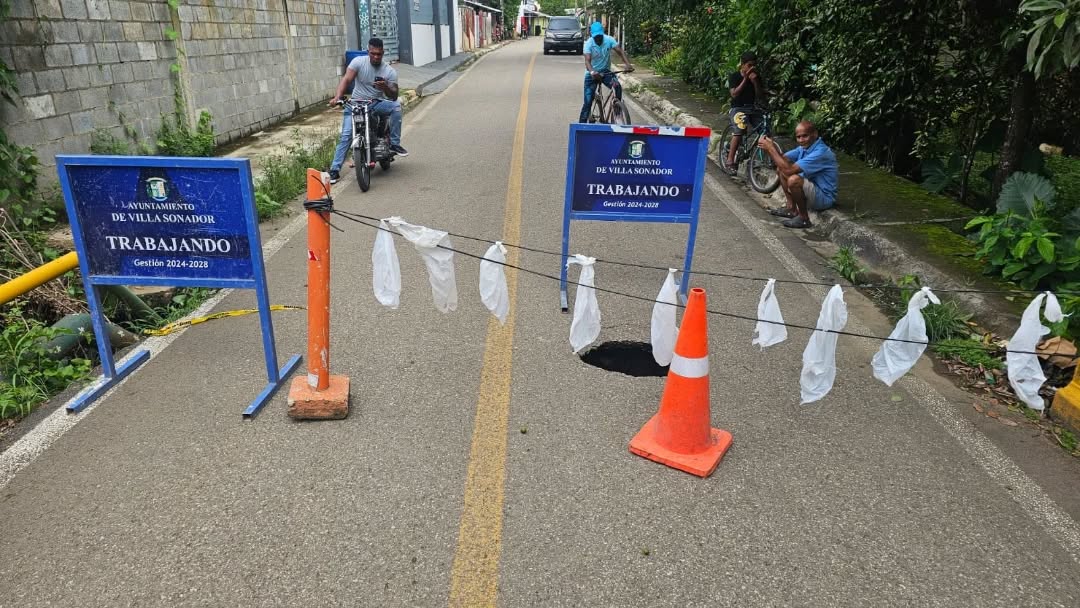 Socavón en el puente del río Ingenio (Carretera Duarte vieja)