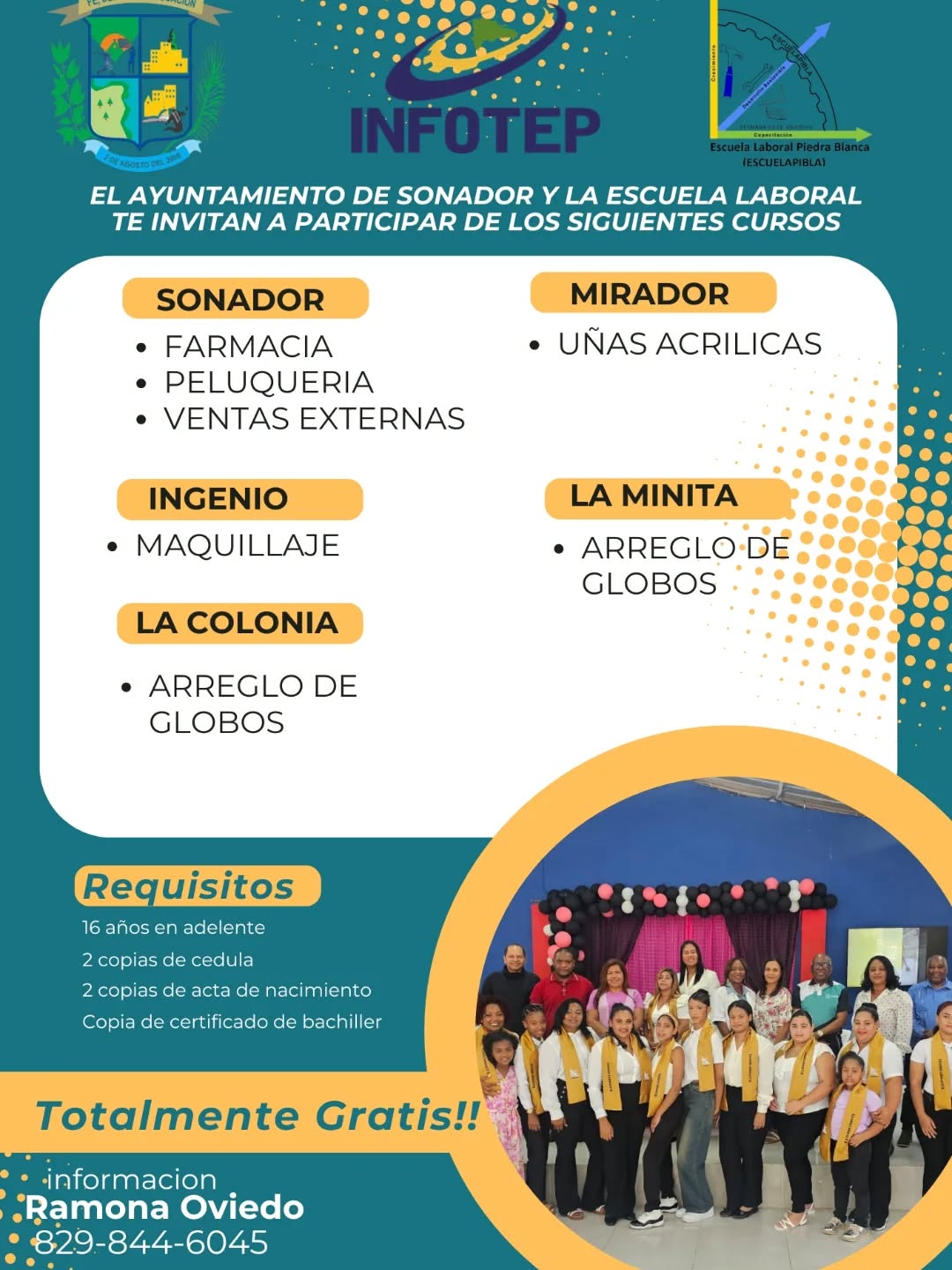 La Escuela Laboral e INFOTEP te ofrece cursos totalmente GRATIS en distintas áreas.