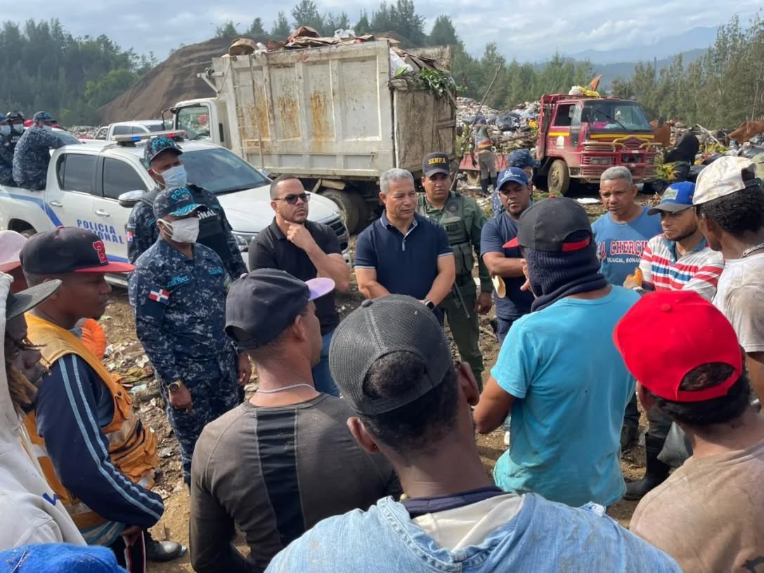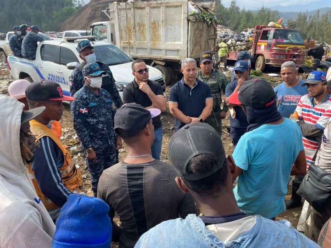 El Director Municipal de Villa Sonador Aruby Taveras junto al Coronel Pérez Bautista; Subdirector de la Reional Cibao Sur Policía Nacional (en representación del General Tito Tejada) y Gregorio Núñez; Director Provincial de Medio Ambiente, intervinieron hoy el vertedero provincial.