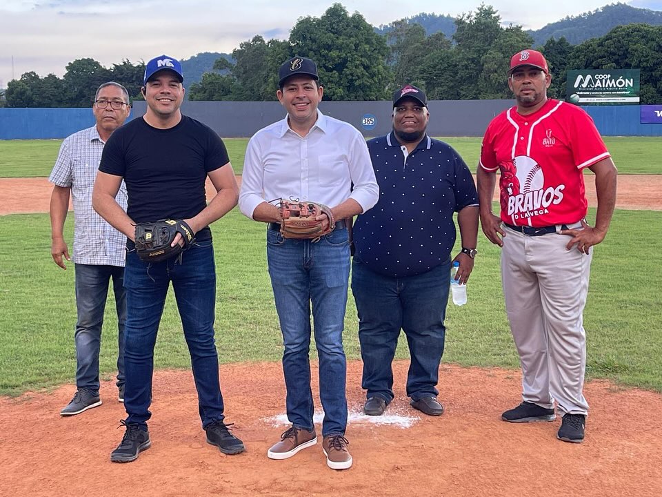 El Alcalde Taveras lanzó la primera bola en el partido, acompañado de su colega el Alcalde de Jayaco, Willy Céspedes. Además, nuestra institución se enorgullece de haber financiado el pago de los jugadores nativos Oferky Peralta, Miguel y el super Argenis.